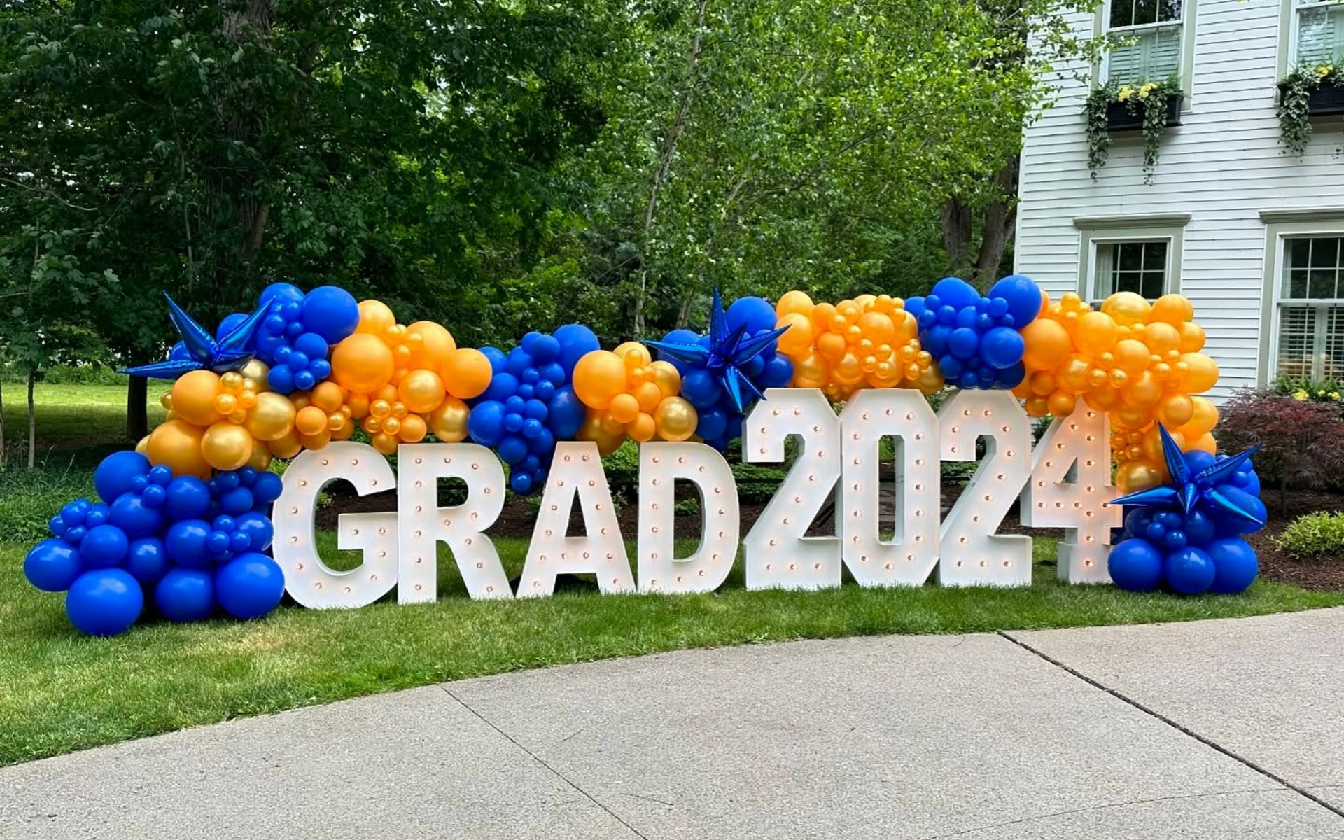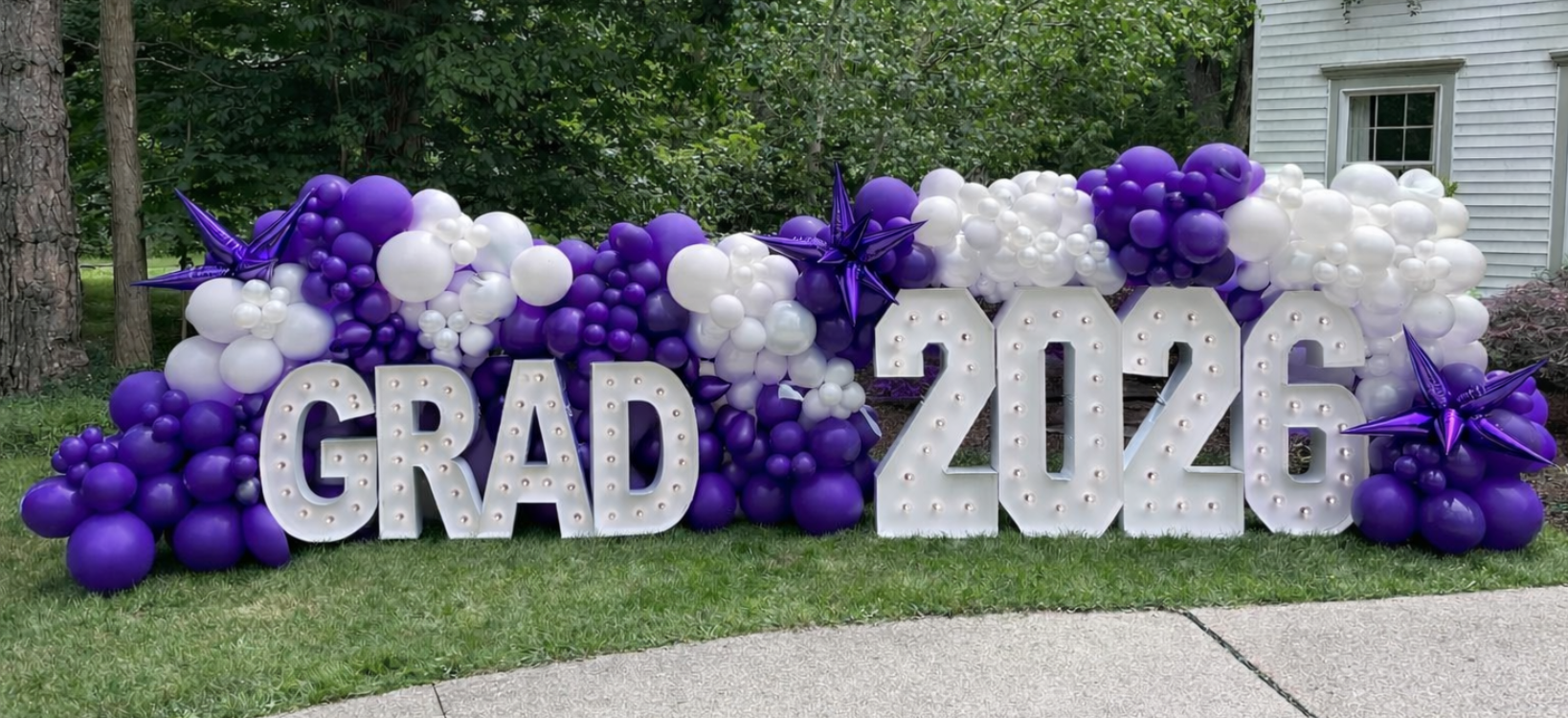 Celebrate your graduate with bold, illuminated marquee letters and numbers that create a standout focal point for your event. From “GRAD 2026” displays to custom number setups, these light-up installations are perfect for graduation parties, photo backdrops, and milestone celebrations across Fort Worth and the DFW area.