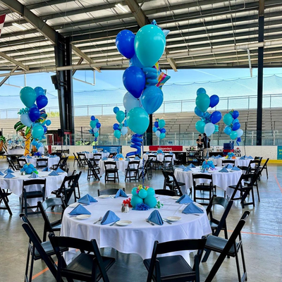 Balloon centerpieces add color and height to your tables without blocking conversation. Perfect for corporate events, weddings, and birthday parties in Fort Worth and surrounding DFW cities, each design is customized to match your theme and color palette.